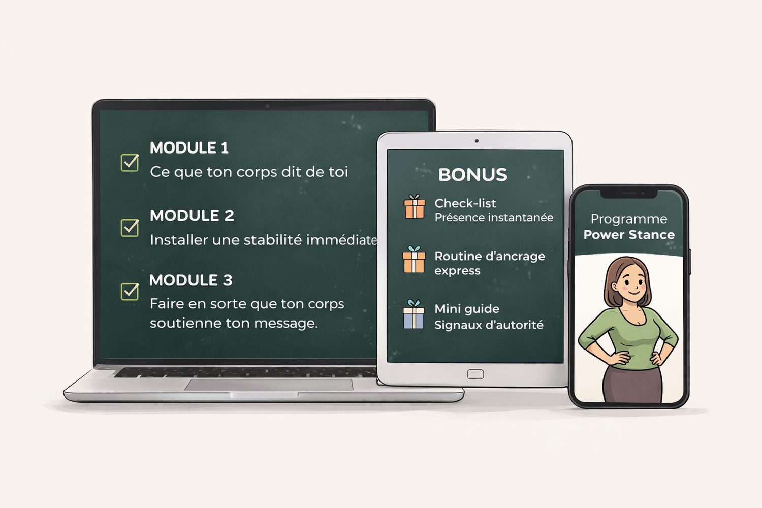 Tu repères tes propres “fuites d’autorité” et tu sais quoi changer concrètement pour que ton corps arrête de dire “je m’excuse d’être là” alors que ton message est solide.